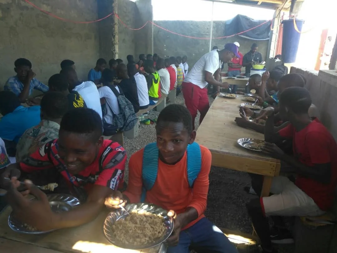 So today the party started. The children came in shifts, 90 at a time, to eat at the makeshift dining hall in Duvelsaint’s backyard. The kitchen staff is made up of volunteers, and they have every shift covered for the next year! The children ate, laughing and chatting like any lunchroom crowd, grateful and relieved. Now they will have a fortified meal every day for the next few months, and we pray that the roadblocks will stop and it will be easy to continue picking up food at Mission of Hope.